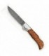 Magnifique Couteau de collection à lame DAMAS numérotée (Couteau livré avec certificat de garantie), couteau DAMAS inox RWL34 120 couches à cran, manche 11 cm en loupe d'Amboine, livré en coffret en bois.